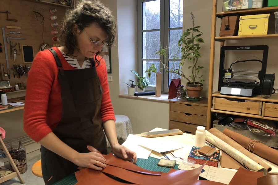 Camille est sellière-maroquinière depuis 2017. De l'atelier familial aux projets haute gamme elle a collectionné des techniques et des savoir-faire et c'est en exerçant le métier d'orthoprothésiste que elle a travaillé le cuir pour la première fois.
